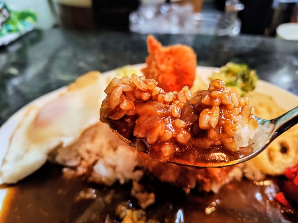 ライスはやや硬めに炊かれており、このルーと相性抜群です。