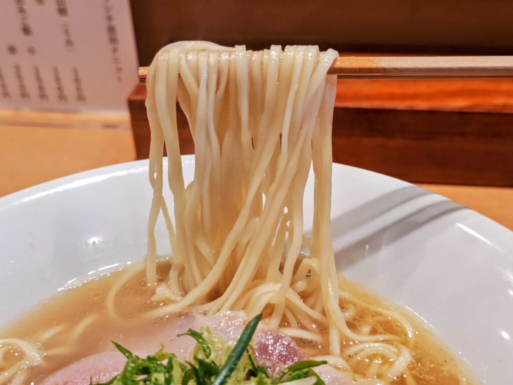 山口県産小麦せときららをメインに国産小麦使用、やや柔めの茹で加減に小麦香りツルモチ食感です。