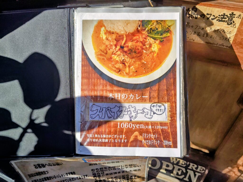 カレーは1種のみ、メニュー最初のページに記載があります。