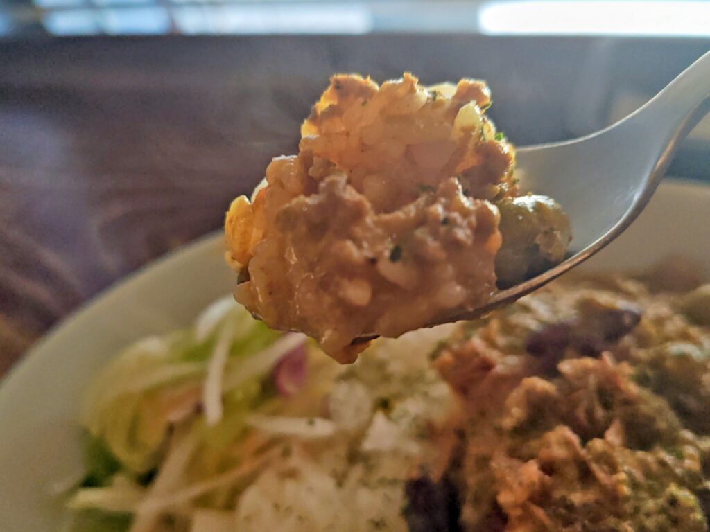 硬めに炊かれ、このキーマと相性よいです。