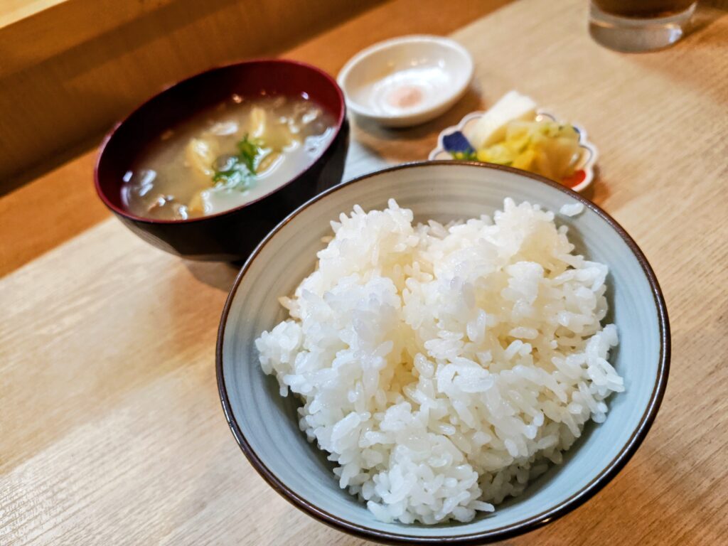 中ご飯は量はまずまずあり適度な炊き加減に艶々で旨いです。