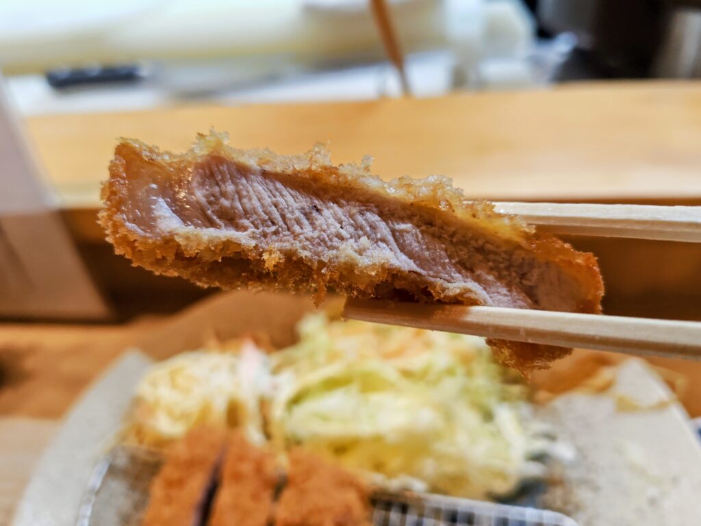 トンカツは中までしっかり火が通り、適度な赤身と脂身のバランスのロース!