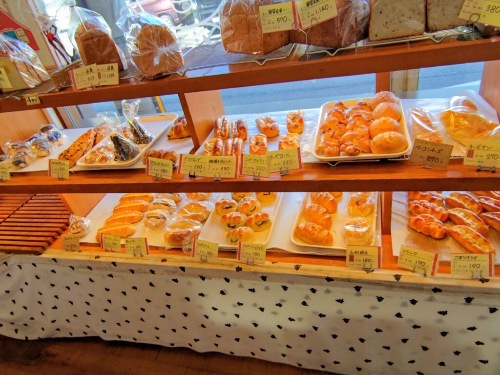 昔ながらのパン屋さんレイアウトにコスパよいパンが陳列されています。