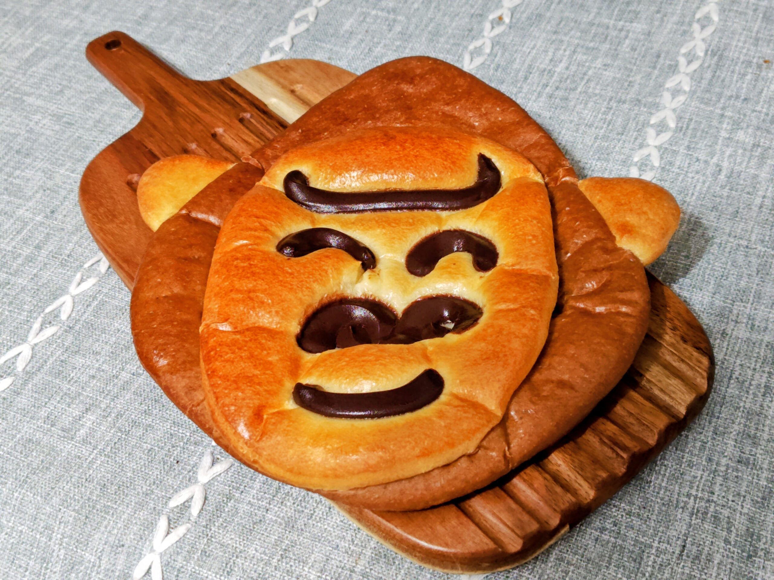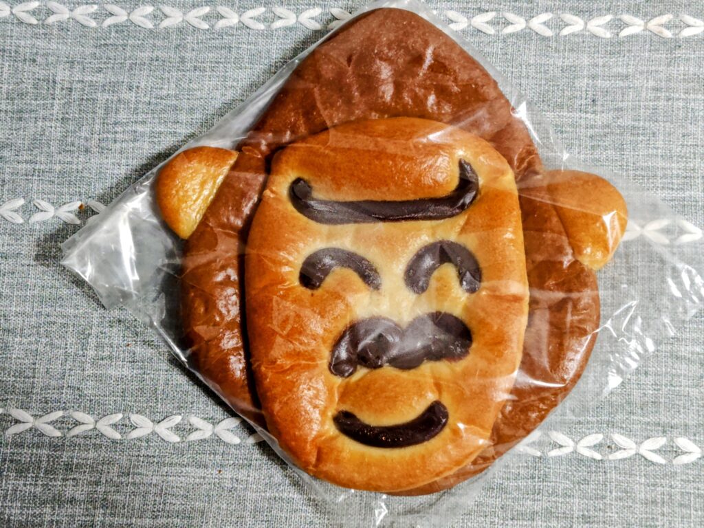 目、鼻、口はチョコクリームとダブルクリームが適度な甘さ、老若男女問わず喜ばれるパンと思います。