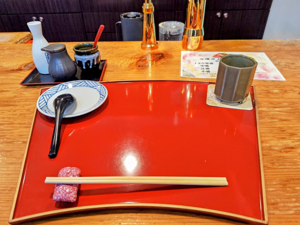 時間になり店主さんが予約の確認、写真撮影の許可を頂き指定のカウンター席に座ります。