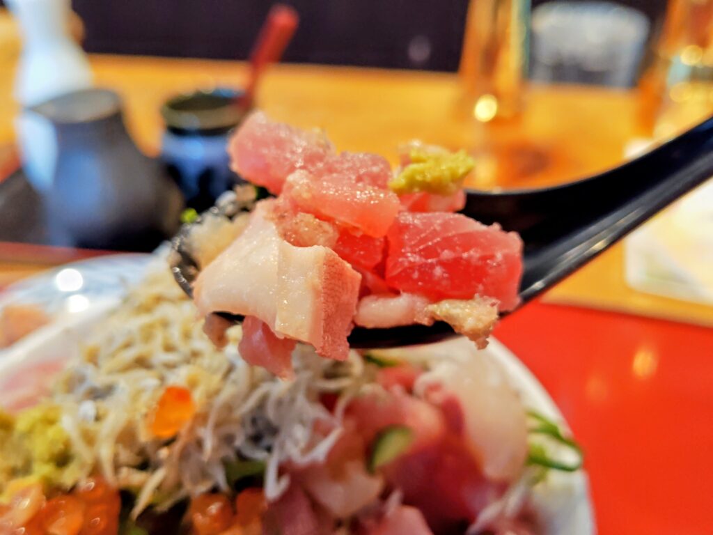 その為、海鮮丼の『中盛』はしっかりした量になっています。食べきれそうな方のみご注文ください。