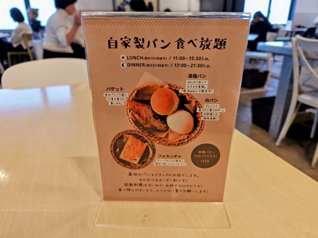 最初のパンは指定できずスタッフさんが持ってきてくれ、おかわりはオーダー制の回数制限なしです。
