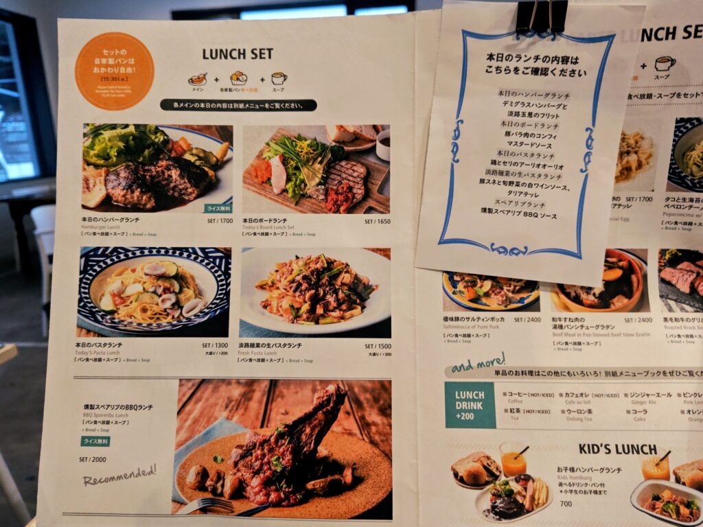 卓上のメニューには本日の各ランチの内容を記載した紙がクリップ止めされています。