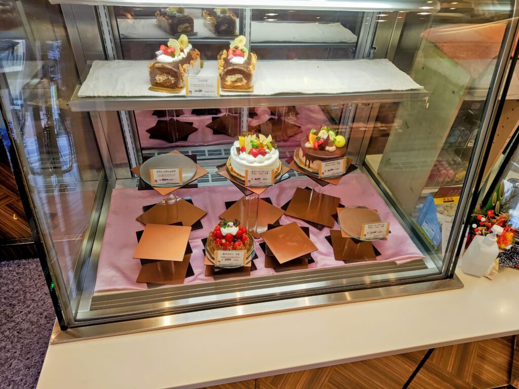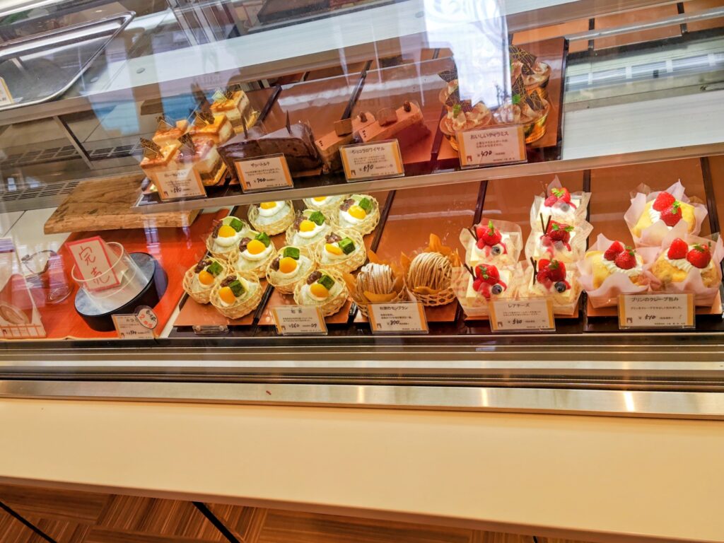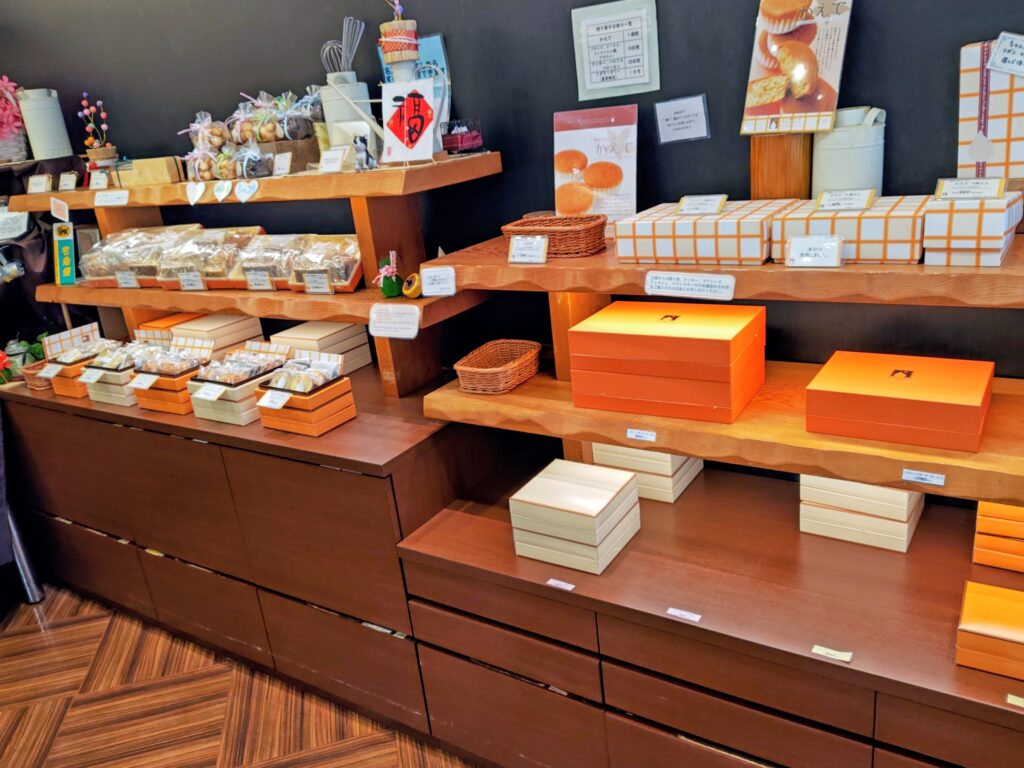 お店のショーケースには美味しそうなケーキが並び、反対側に焼菓子の陳列があります。