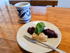 ロッシュはフランス語で岩の意味。メレンゲ生地にビターなチョコ、アーモンドなどで岩のゴツゴツ感を表現したお菓子で食感が心地よいです。