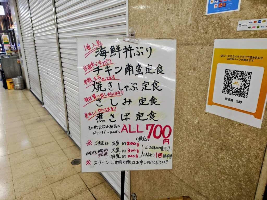 海鮮丼ぶり、チキン南蛮定食、焼きしゃぶ定食、さしみ定食、煮さば定食の5種。
