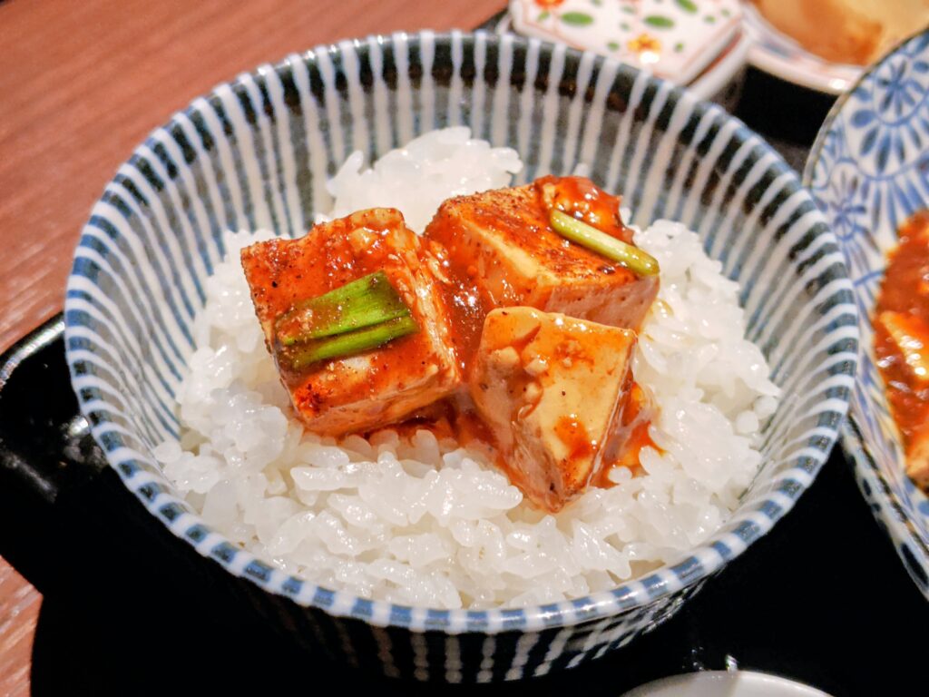 香味野菜が溶け込んだ香りよい麻婆豆腐!辛すぎず痺れすぎずコクと旨味のバランスよしです。
