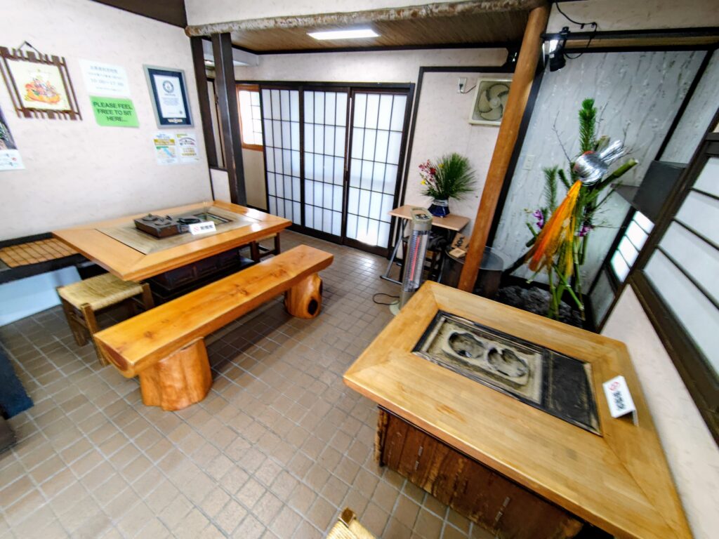 この時期らしく囲炉裏に炭火で暖がとれます。