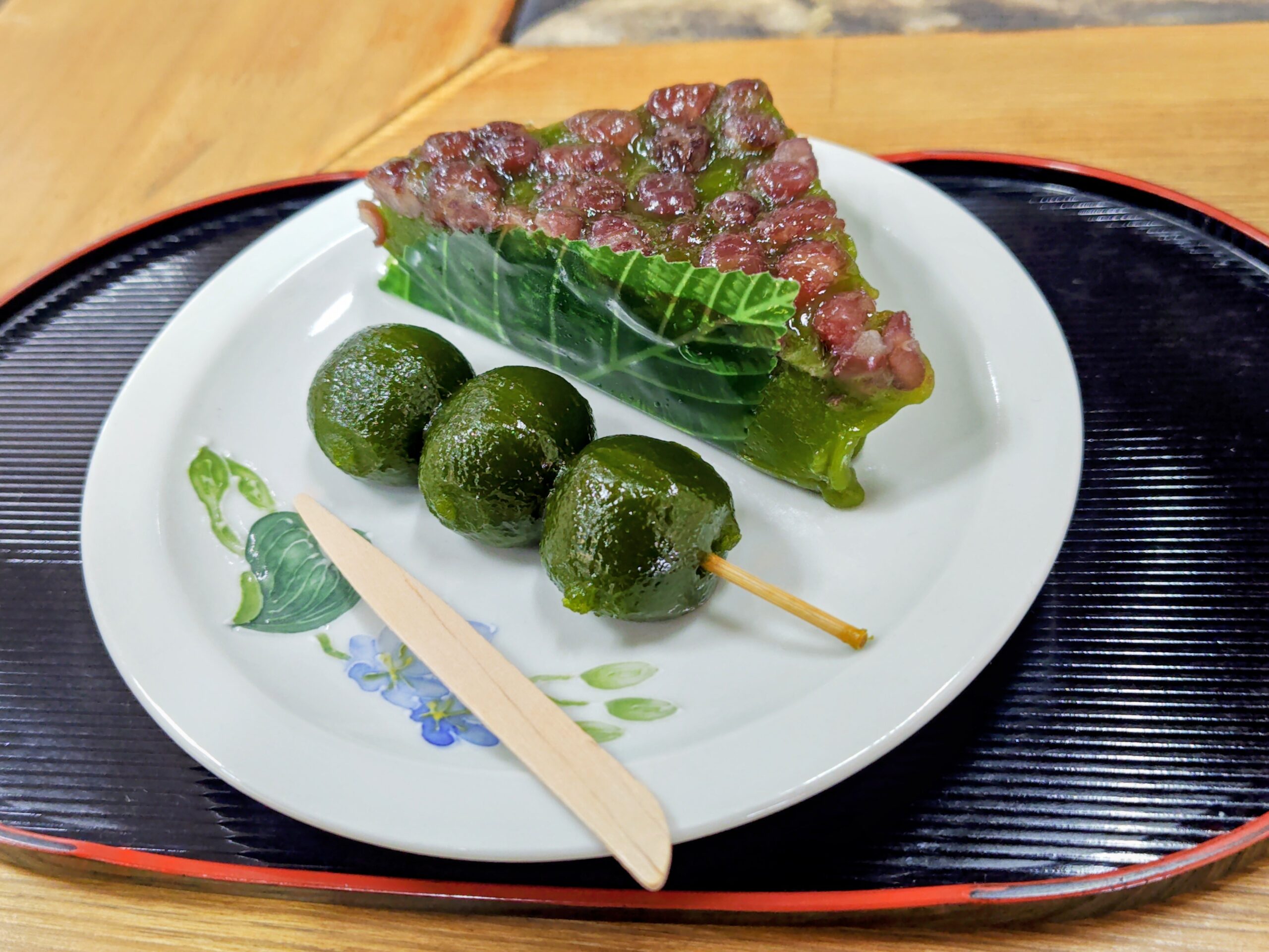 京阪宇治駅前 駿河屋【京阪宇治】:茶だんご、みなつき抹茶 宇治抹茶の風味を大事にした手づくりの味!和菓子・甘味処百名店さん!!!