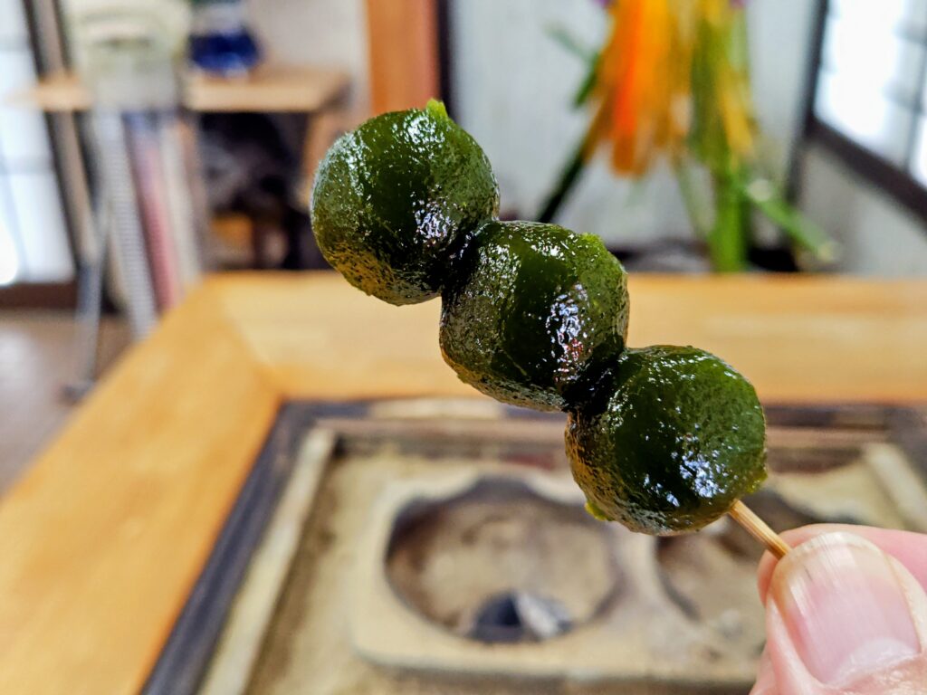 茶だんごは国産米粉と地元宇治の茶園と直接契約で仕入れる宇治抹茶を使用。