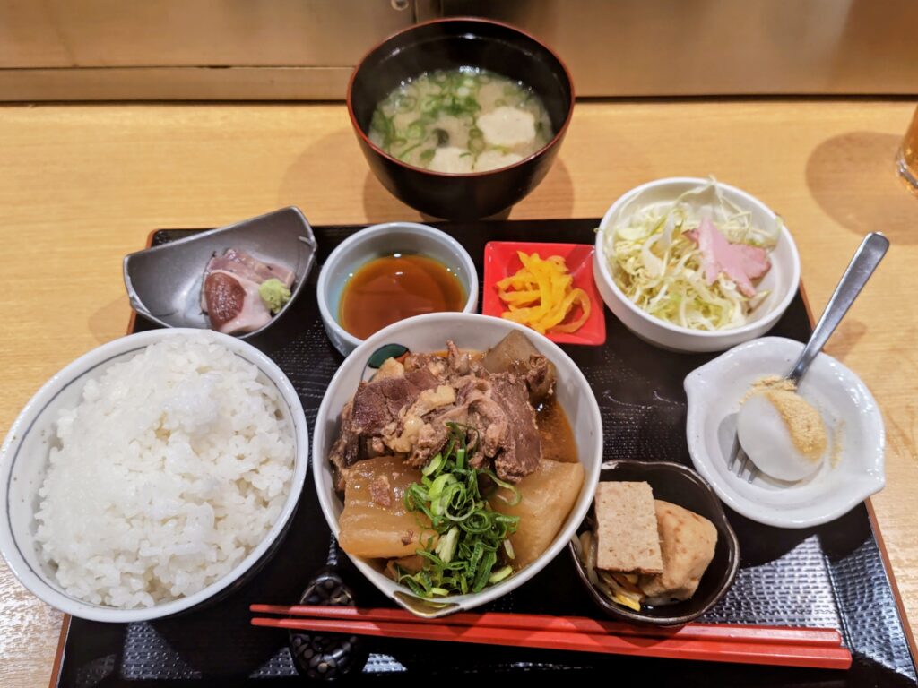 メインの牛すじ煮込み、小鉢1品、サラダ、お造り、デザート付き!