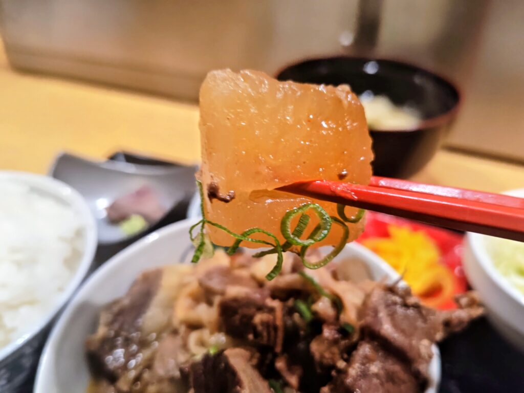 具材は牛すじ、大根、蒟蒻に仕上げの刻み葱!