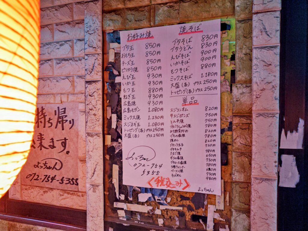 店名『よっちゃん』は店主さんの苗字からの老舗お好み焼き屋さんです。