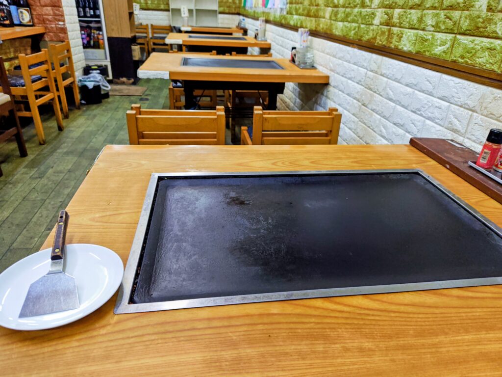商品はカウンター側の鉄板で大将さんが焼かれ、各カウンター席の前の鉄板に運ばれます。
