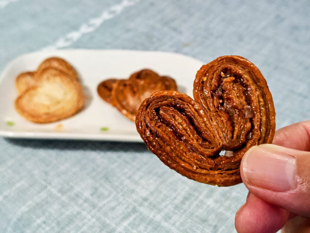 パルミエキャラメリゼは砂糖を加熱して褐色に変化させる調理過程を追加した品。