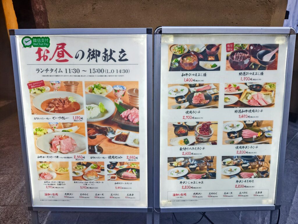 ランチメニューは焼肉各種、しゃぶしゃぶ、すきやき、ステーキ、ローストビーフ丼、ビーフカレーのランナップ!
