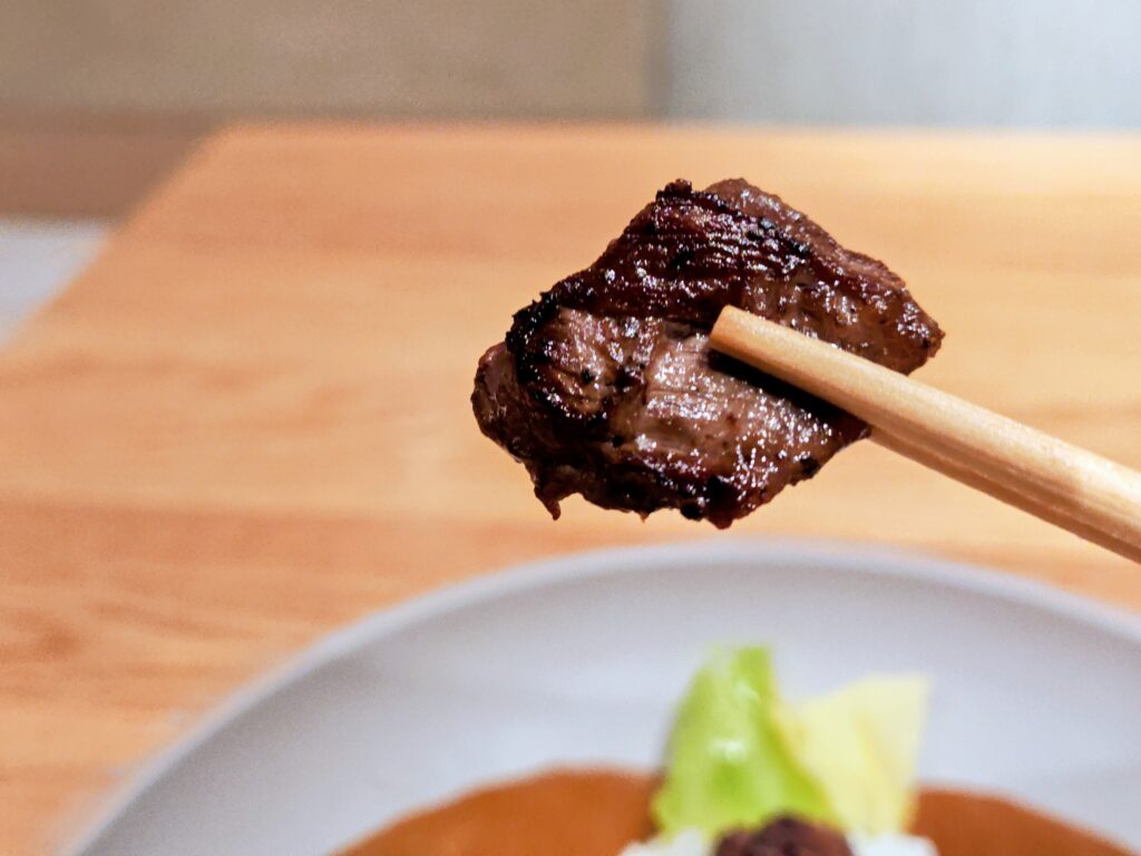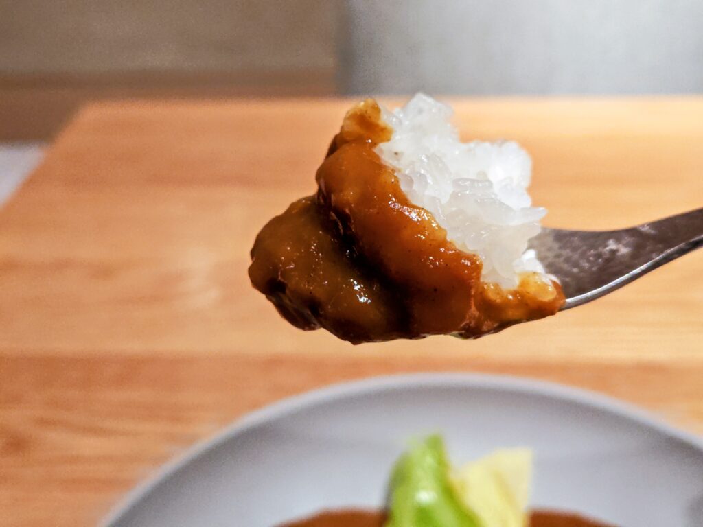 艶よく粒がたっており、硬めの炊き具合がこの粘性高いルーと相性抜群です。