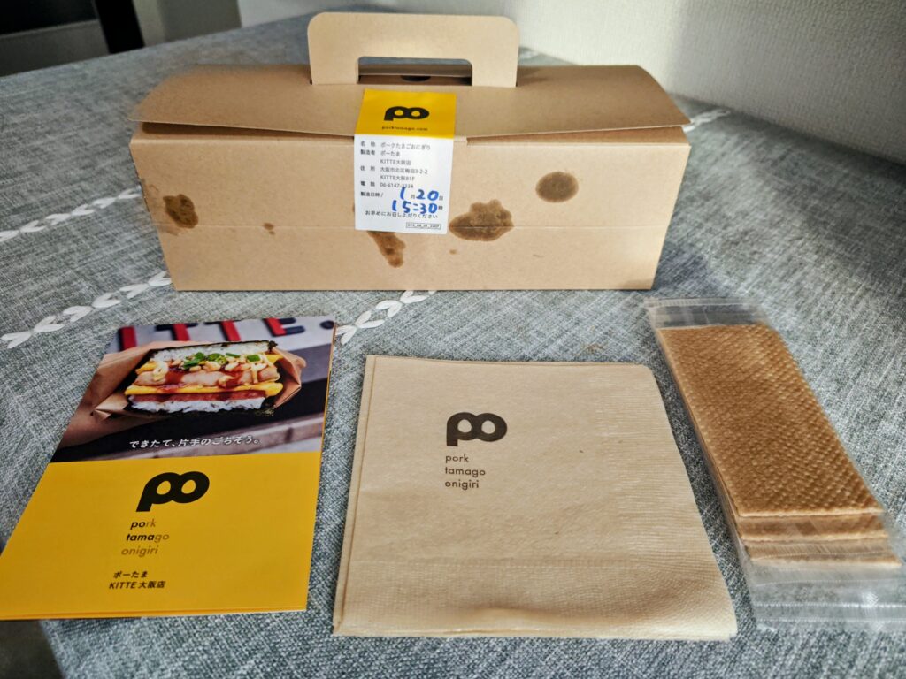 中にはパンフレット、ボックス、個数分お手拭き、ポーたま用ペーパー入り。