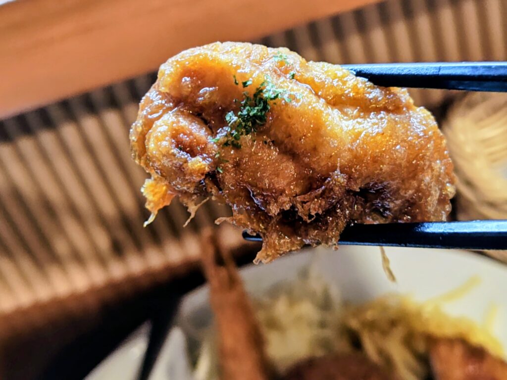 トンカツは細かめのパン粉にソースがかかり豚肉の旨み!