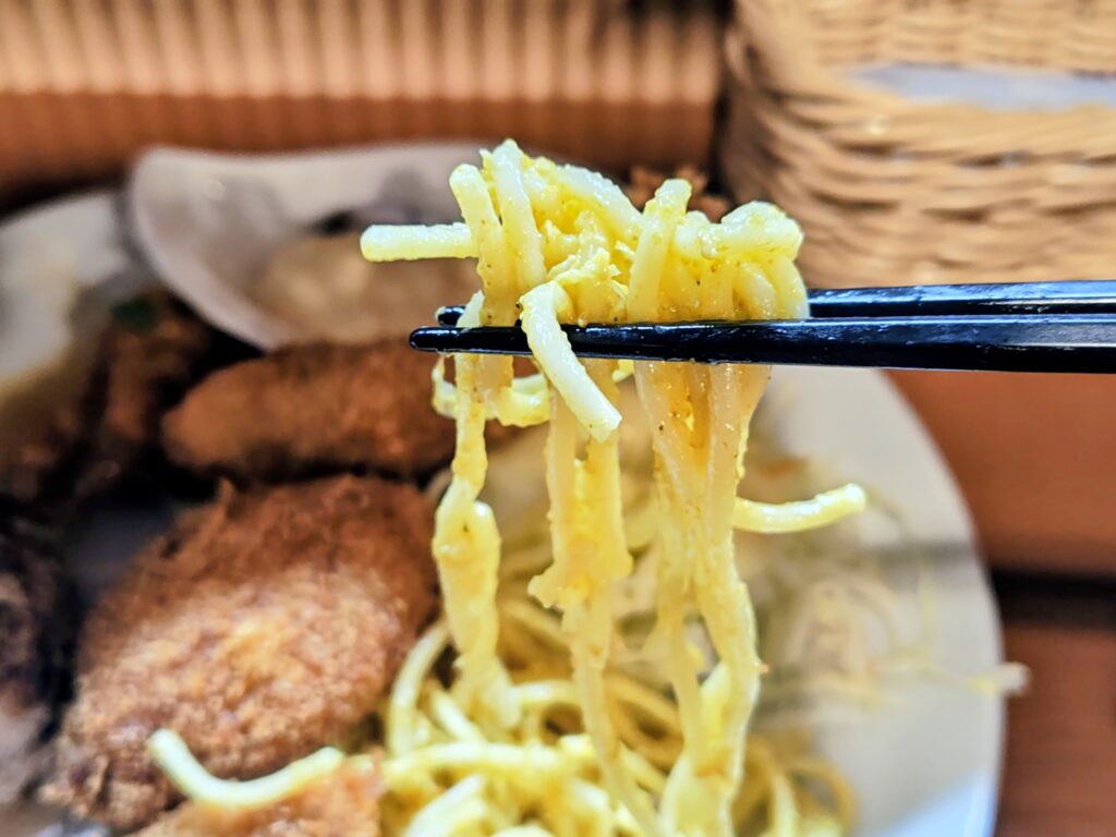 スパは控えめなカレー味、サラダには酸味を抑えたドレッシングと主役を活かす名脇役です。