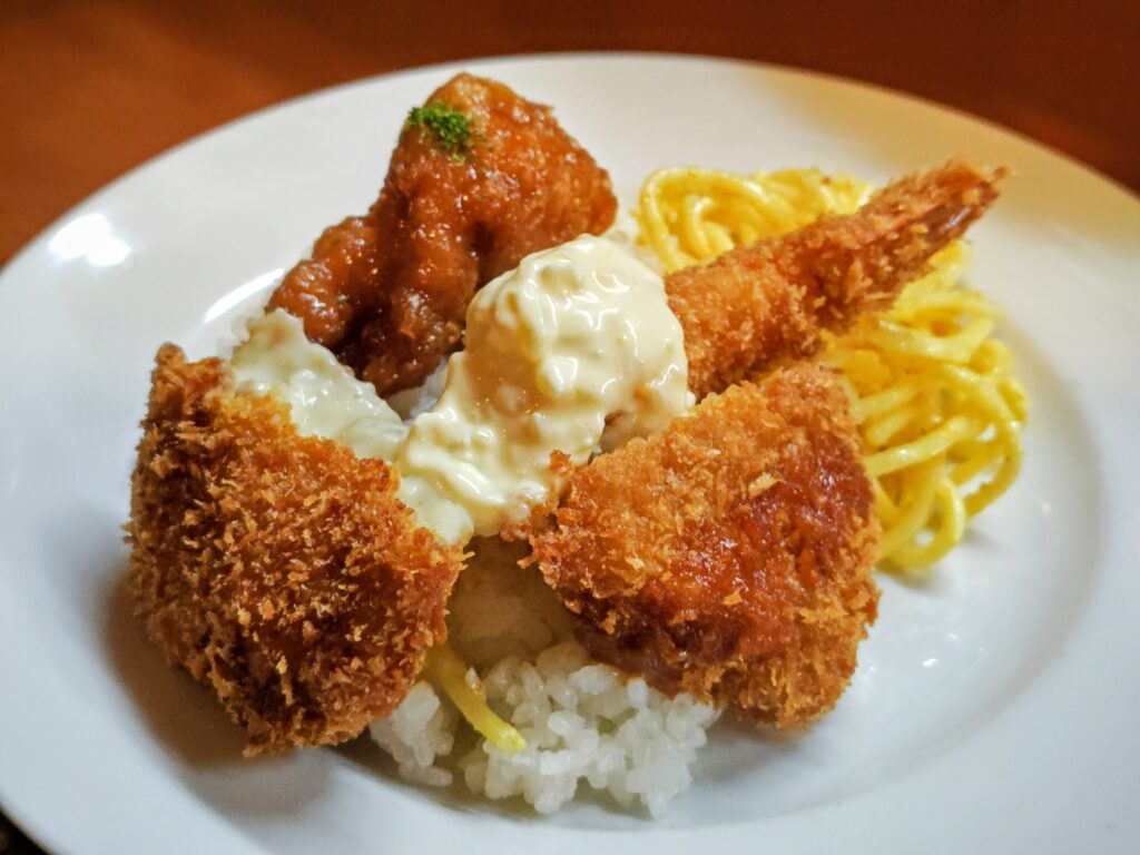 たっぷりのタルタルソースを絡めてサクサク衣でプリッとした海老とナイスです。