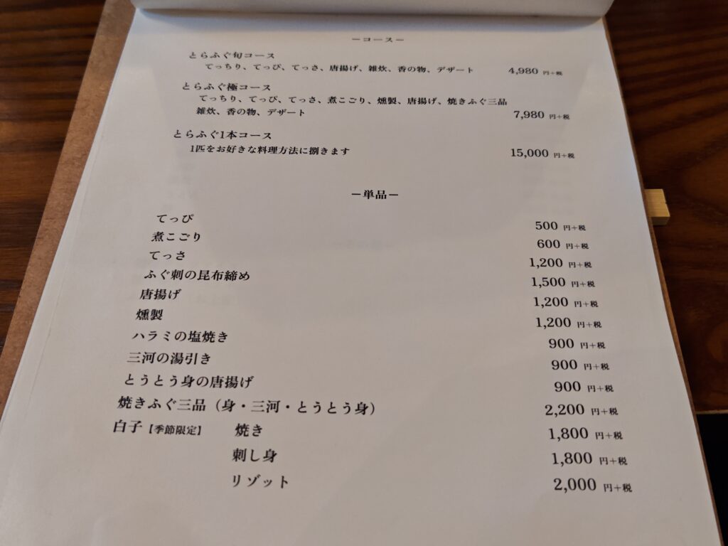 バルメニューはとらふぐの唐揚げ、てっぴ、指定ドリンクより1杯です。