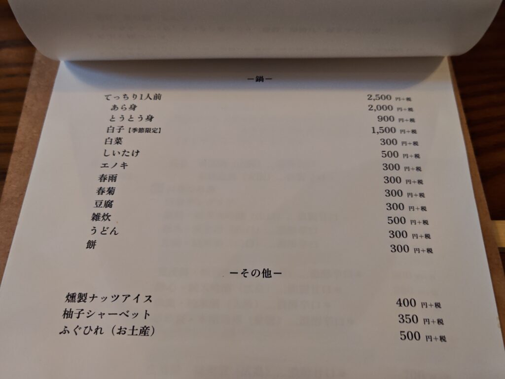 フードメニューはコース3種、単品、鍋物、その他のラインナップです。