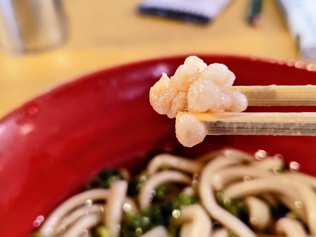 刻み葱のシャキ感に揚げ玉の軽い食感!