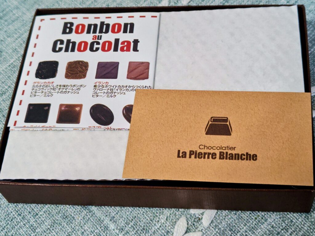 BOXを開けると、お店さん名刺にチョコレートの説明書き。