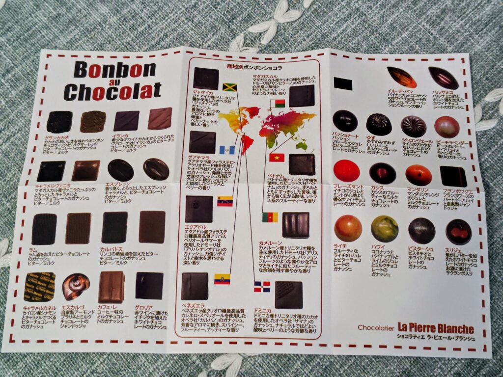 世界の産地別ボンボンショコラのMAPに各チョコレートの特徴の記載があります。