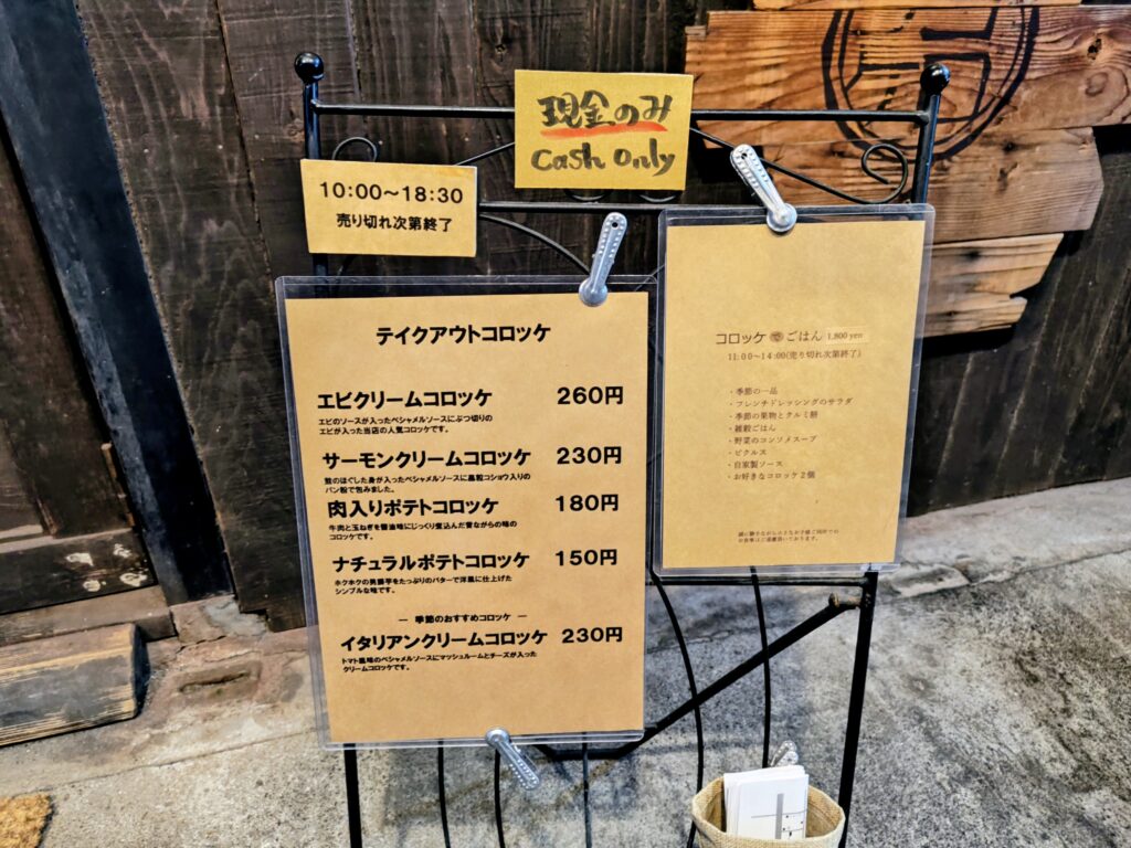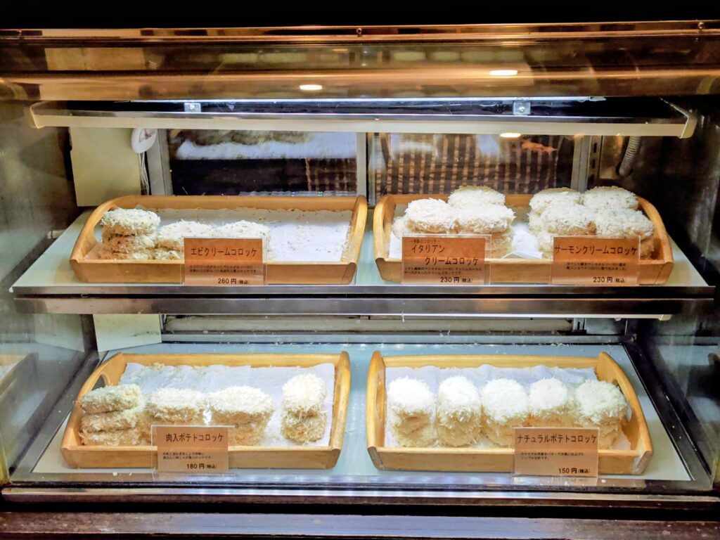 コロッケはクリーム3種(エビ、イタリアン、サーモン)、ポテト2種(肉入り、ナチュラル)!