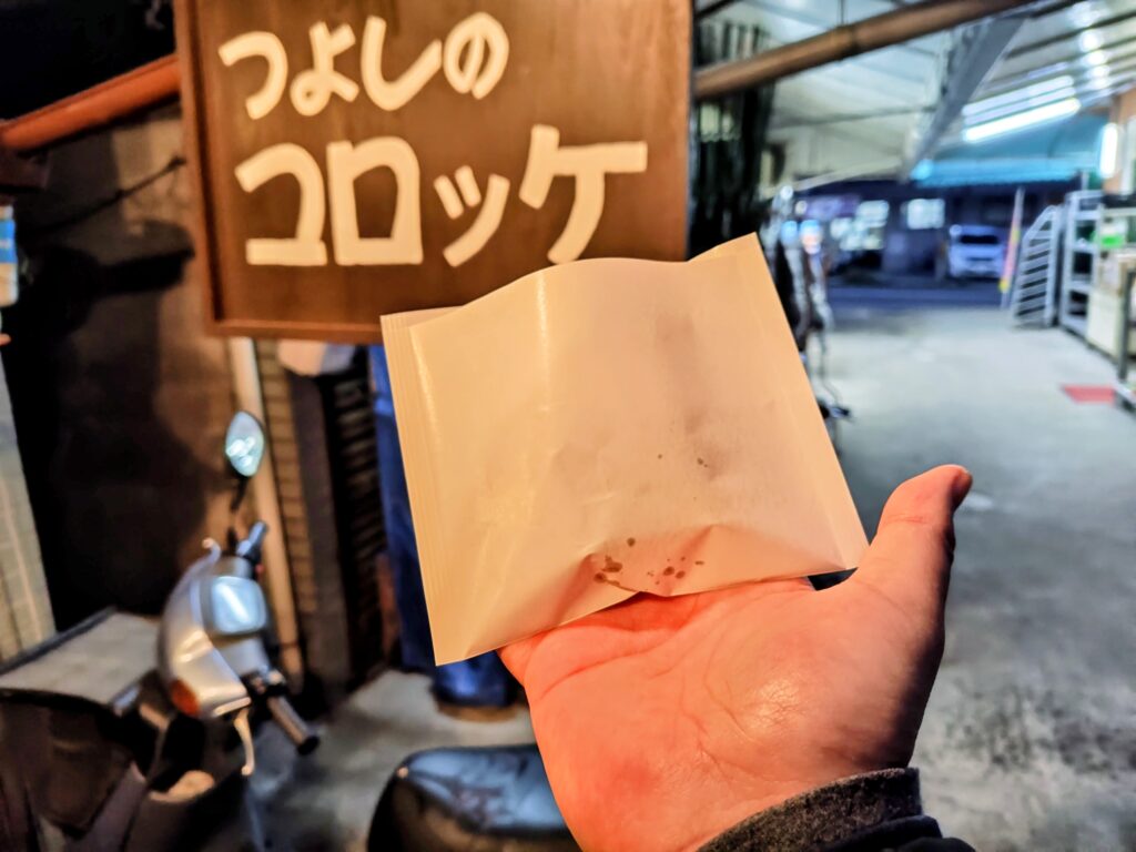 紙包装を開けると丸いコロッケ!