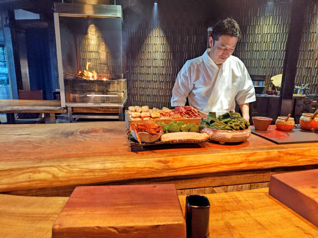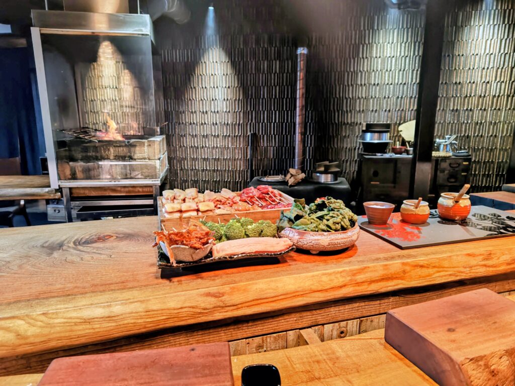 見た目だけでなく薪火を併用することで香ばしさと奥深い風味を演出されています。