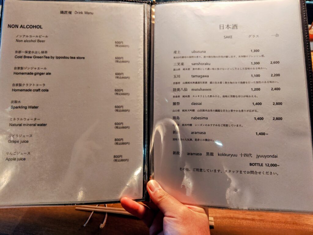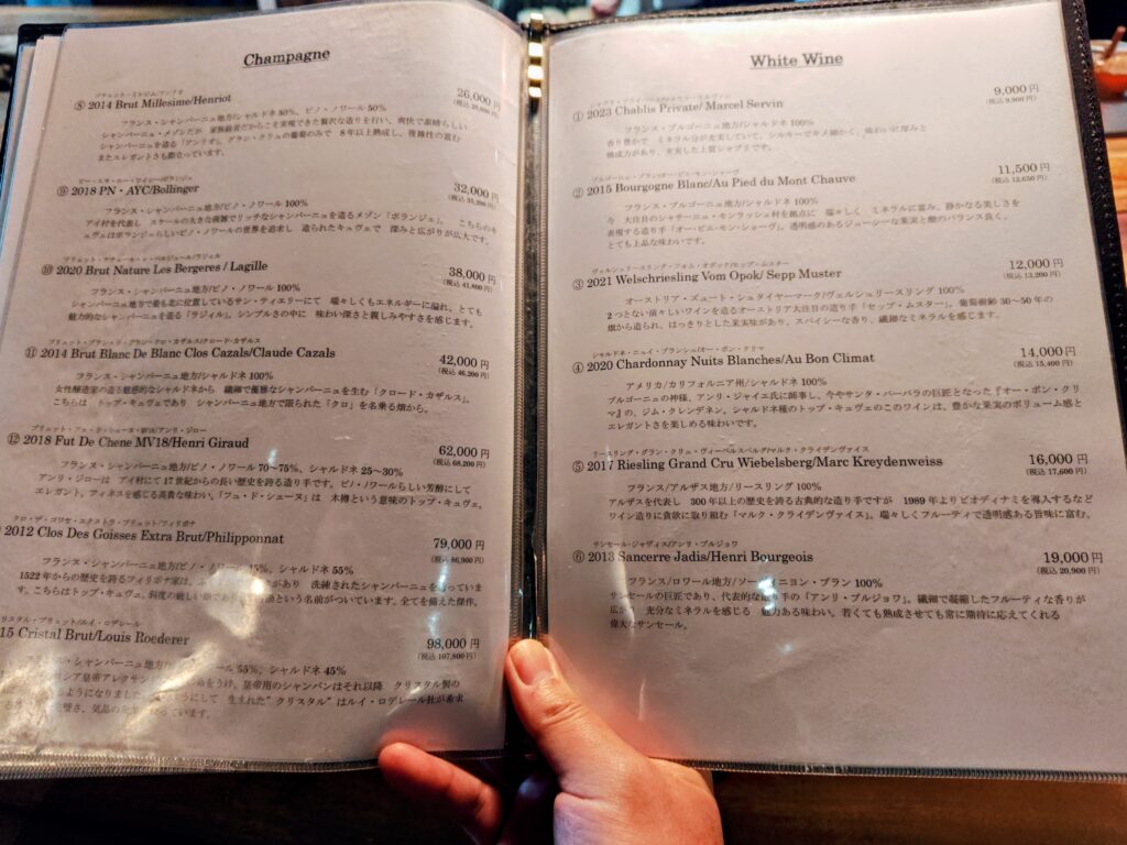 メニューはおまかせコース1種のみ、ペアリングのワインor日本酒の有無し。
