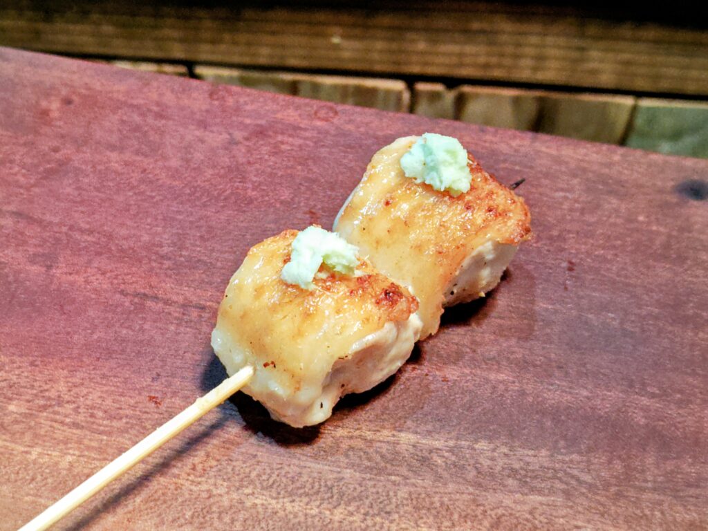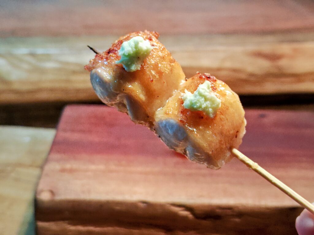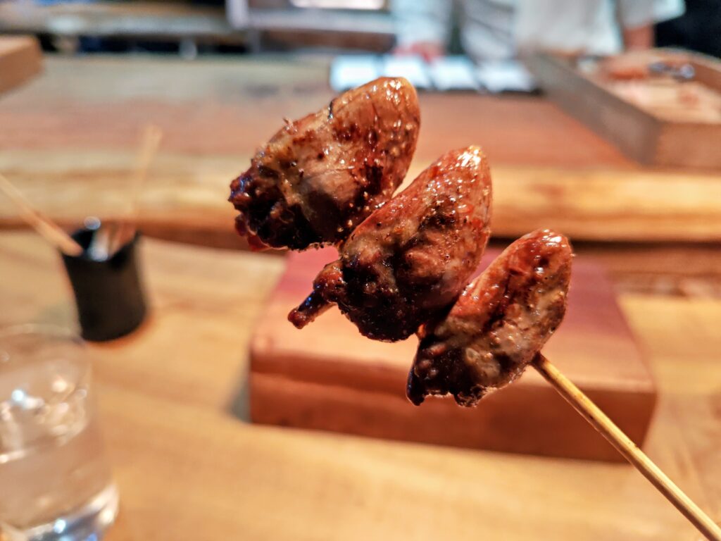 せせりは鶏の首回りの希少部位、皮をしっかり焼かれており噛むと程よい歯ごたえで、濃厚な肉の味わいを楽しめます。