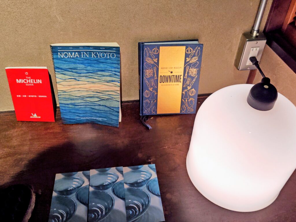 板の間にはさり気なくnomaさんの本とミシュランガイドブックが飾られています。