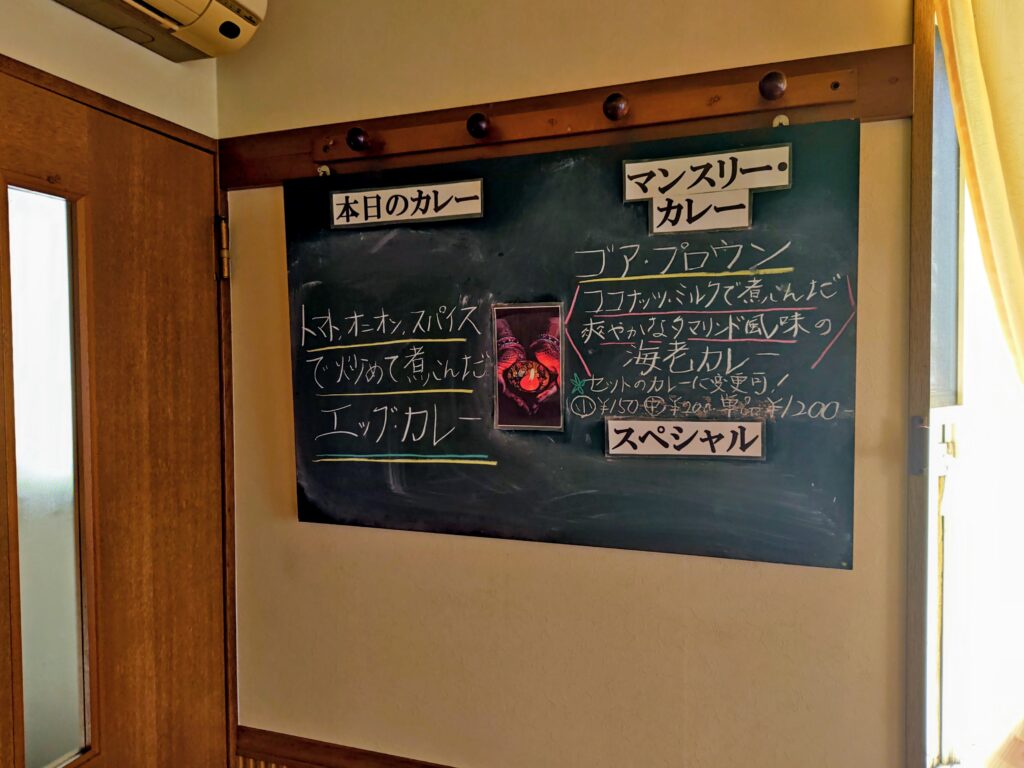 この日はマンスリー⇒ゴア・プロウン、本日のカレー⇒エッグカレーの提供です。