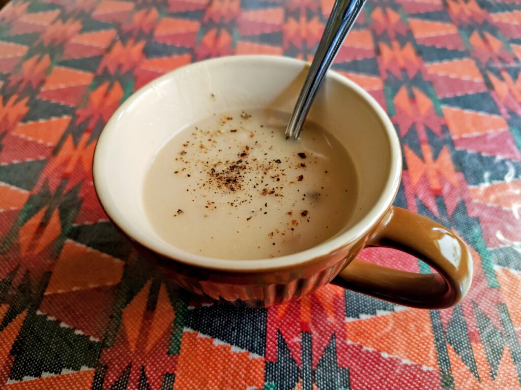 胡椒が効いたクラムチャウダーは身体が温まる優しい味わいです。