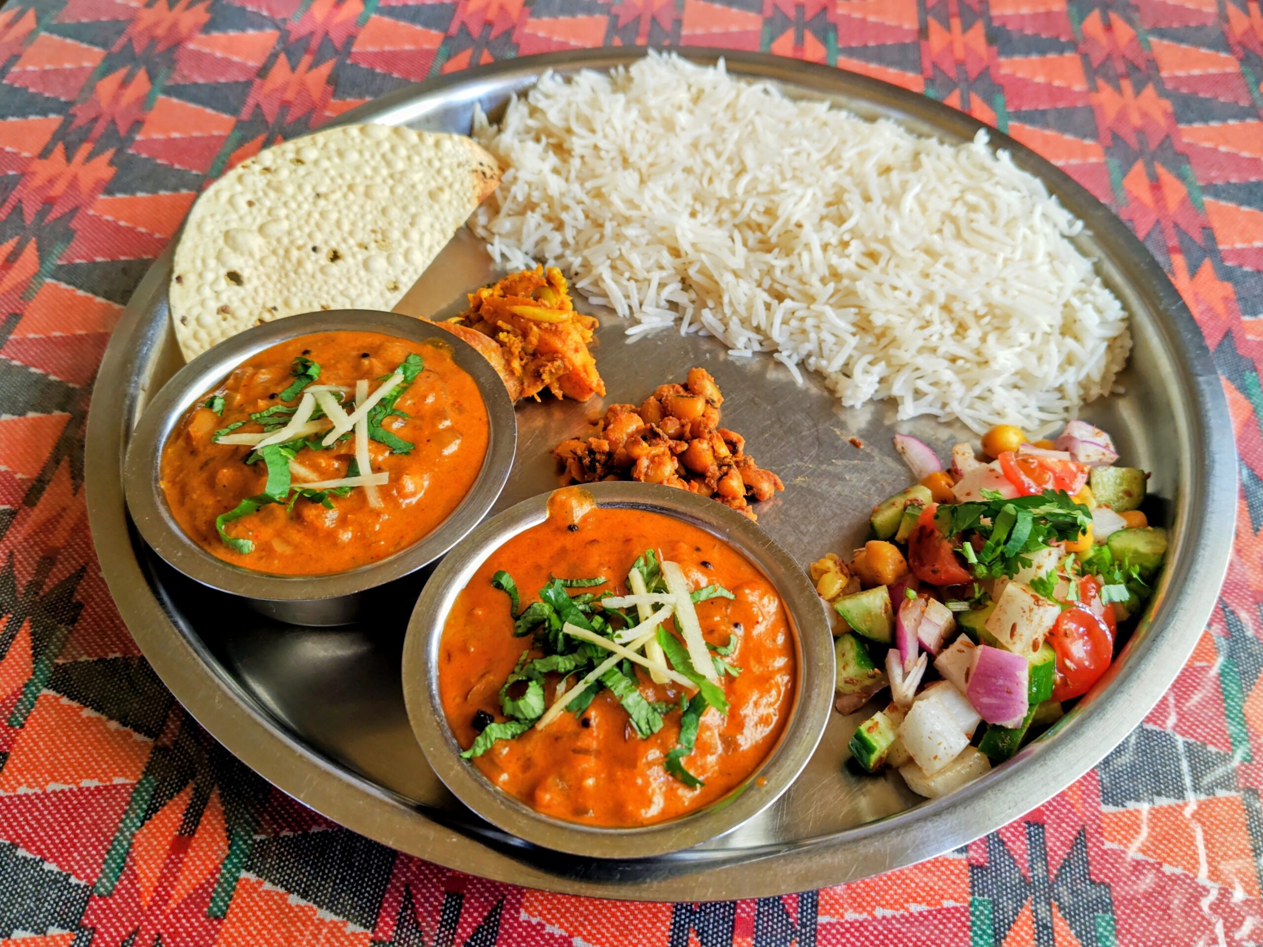 カチュンバル、パパド、アチャール付きでナンorライス。