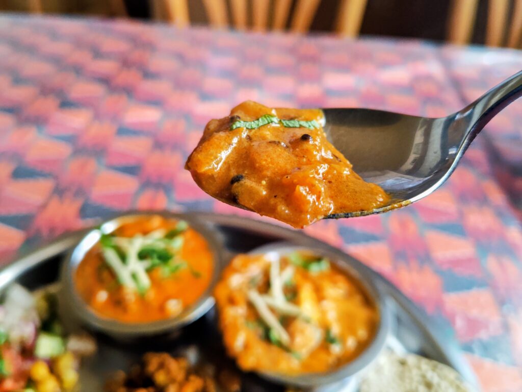 辛味、酸味、苦味の混沌にパパドの食感がいいアクセント!