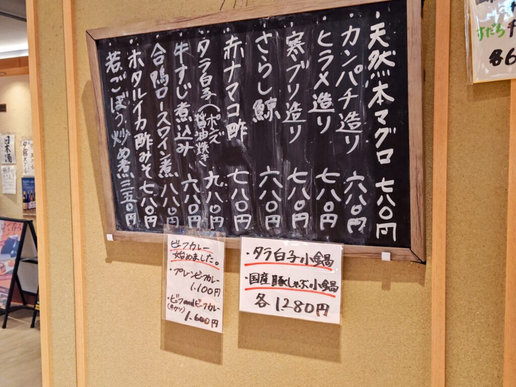 昼飲み可能で居酒屋メニューや小鍋、ビーフカレー等もあります。