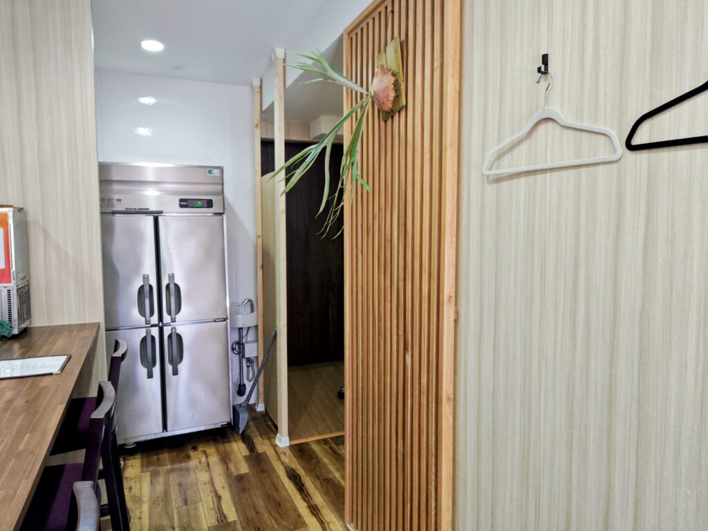 美容室とカフェの入口は兼用、カフェの奥側に美容室があります。