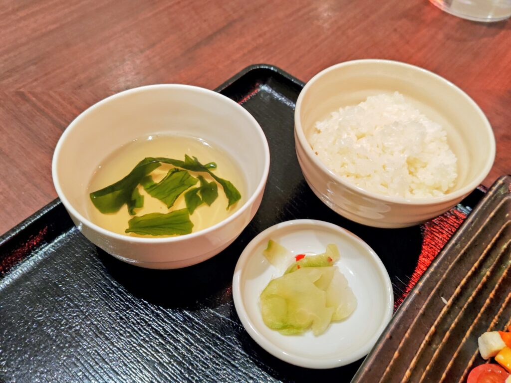 スープはレンゲ提供なく、ワカメちょびっとのスープ量少なく残念レベル。