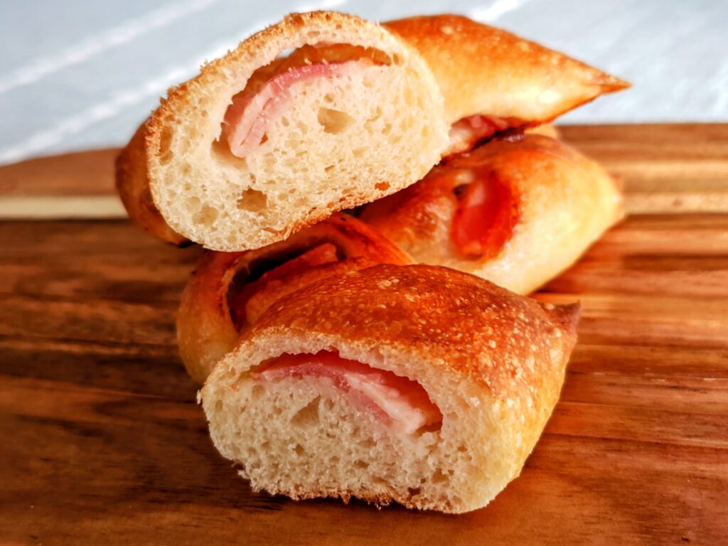 フランスパン生地にベーコンを包んで焼いたハード系調理パン!
