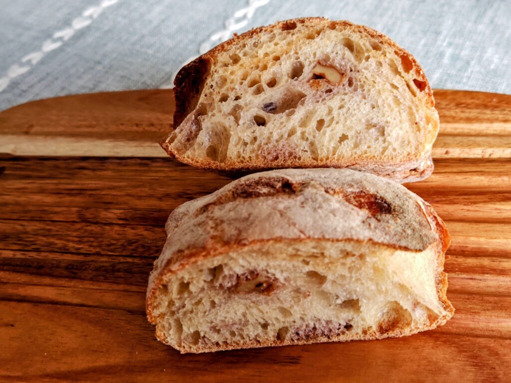 自家製酵母のライ麦生地にローストしたクルミとドライいちじくを練り込んだハードパン!